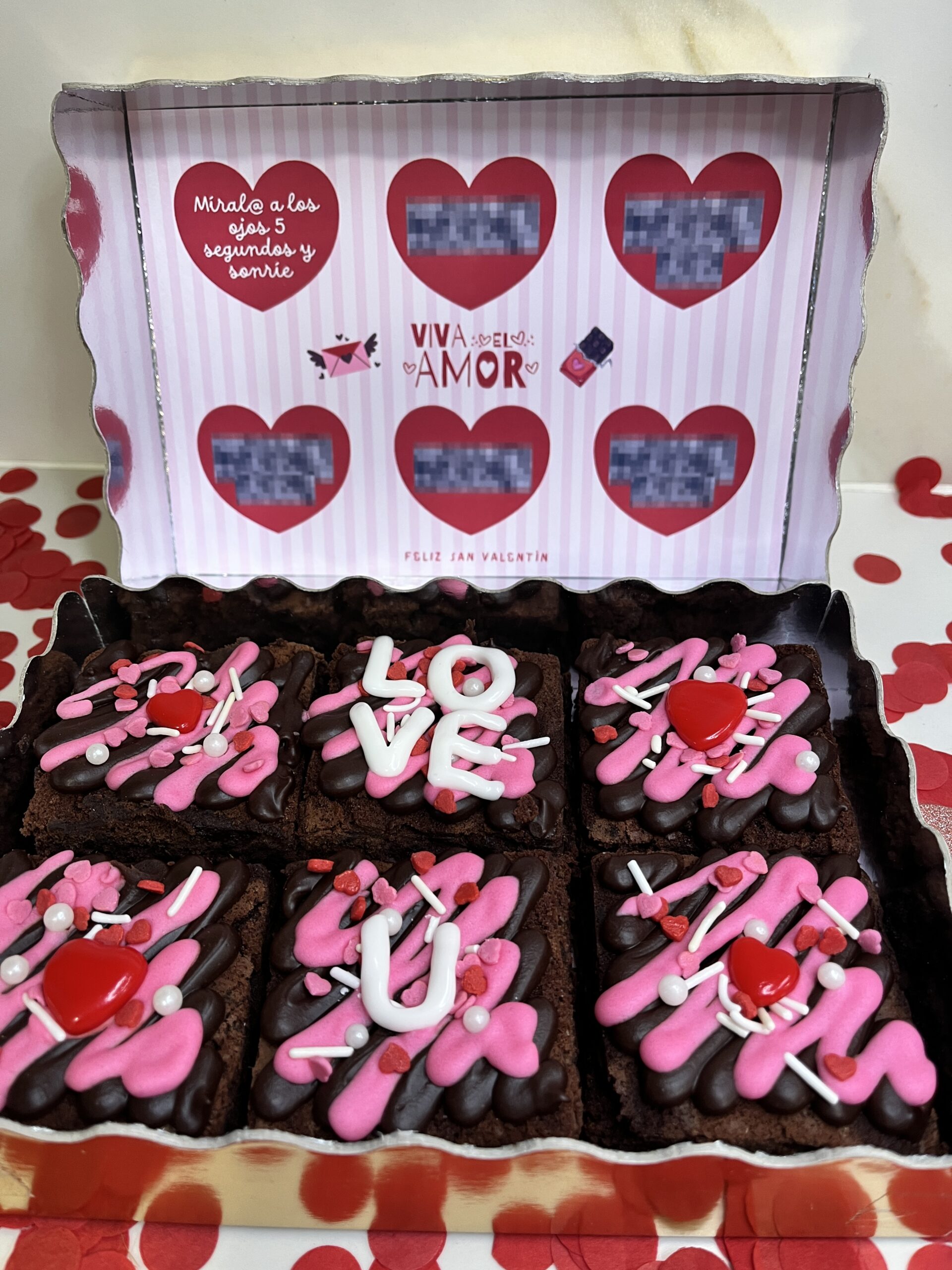Huevos, margarina vegetal [aceite y grasas vegetales (palma, coco, girasol, soja, en porción variable), agua, emulgente (E471, lecitinas), sal (0,4%), acidulante (ácido cítrico), conservador (E202), aromas, colorante (carotenos)], chocolate negro [pasta de cacao, azúcar, manteca de cacao, emulsionante: lecitina de soja (E322), aroma: vainilla natural], mezcla harinas sin gluten [almidón de maíz, harina de arroz, harina de arroz integral 3,8%, harina de lentejas 3,6%, fibra vegetal (psyllium), dextrosa, espesante: hidroxipropilmetilcelulosa; fibra de bambú, sal], drops de chocolate negro [azúcar, pasta de cacao, manteca de cacao, emulgente: lecitinas (soja)], azúcar blanco, azúcar moreno de caña, cacao en polvo alcalino [cacao en polvo, regulador de acidez (carbonato de potasio)], aroma de vainilla [sustancias aromatizantes, diluyente (propilenglicol)] y sal; nata vegetal [agua, grasa de palmiste totalmente hidrogenada, azúcar, estabilizantes (jarabe de sorbitol, hidroxipropilmetilcelulosa, carragenato, carboxilmetilcelulosa sódica, goma tara, goma gelana), emulgente (polisorbato 60, monoesterato de sorbitan, ésteres mono y diacetiltáricos de los mono y diglicéridos de ácidos grasos, estearoil-2-lactilato de sodio, lecitina de SOJA), aroma, regulador de acidez (fosfato disódico, citrato trisódico), sal, colorante (carotenos de plantas)]; glasa real [azúcar, clara de huevo deshidratada, jarabe de glucosa deshidratada, corrector de acidez: ácido cítrico (E330), colorante]; colorantes [naranja E110, verde (E104, E133) y violeta (sorbitol líquido, agua, rojo (E123), glicerina, azul brillante (E133), carboximetilcelulosa de sodio, sorbato de potasio)]; caramelos decorativos [azúcar, almidón de maíz, dextrosa, totalmente hidrogenado aceite de palma, dextrina, espesantes (E414, E415), emulgente (E322), fécula de patata, agua, antiaglomerante (E470b), colorantes (E153, E160a, E120, E150a, E133, E100), agentes de recubrimiento (E904, E903), aroma].